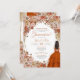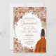Convite de quinceanera com flores, rosas, erva-pampas e palmeiras secas e folhas de outono. Esta design apresenta uma menina de vestido marrom, cercada por lindas flores de outono e borboletas monarcas (que podem ser escondidas na ferramenta design se você não as quiser). Veja o compro para este design em variações múltiplas, incluindo tom de pele/cores de cabelo, e sem a menina também.