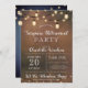 Elegante convite de festas de aposentação surpresa marrom-cacau com luzes de cordas brilhantes e uma combinação de guião e tipografia de rosto aberto sobre fundo ombre marrom-cacau com efeito atmosférico suave. Perfeito para a comemoração da aposentadoria masculina ou feminina. Para mais personalização, clique no botão "Personalizar" e use nossa ferramenta design simples para modificar este modelo.