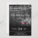 Um convite de aniversário rústico do 50º, que apresenta branco tipo em fundo preto de cinza com luzes de fadas mágicas festivas e frascos-pedras. A idade é adicionada ao jarro de mason em um coração rosa. Adequado para 40º, 16º, 18º, 21rua, 40º, 50º, 60º, 70, 80, 90, 100º ou qualquer idade. Para mais personalização, clique no botão "Personalizar" e use a ferramenta design para personalizar este modelo. Um estilo de excelente para um verão, festa de aniversário ou churrasco.