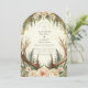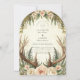 A rustic woodland wedding design featuring deer antlers, soft blush roses, ferns, and greenery. The natural elements and earthy tones create a romantic yet rugged atmosphere, perfect for boho, forest, or country-themed weddings.