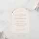 This invitation features a modern arch shape with a rustic boho twist. It has a beautiful field photo frame on one side and customizable text on the other. This elegant template allows couples to easily add their names, date, venue, and a personal photo. Maximum customization makes it easy to personalize for any rustic, modern, or bohemian-style wedding.