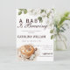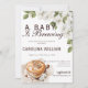 Este "Baby is Brewing", um convite para chás de fraldas rústico para o tema do café, apresenta um design aconchegante com uma xícara de café no canto inferior esquerdo. Acima, flores brancas macios em tons de bege e marrom enquadram suavemente o topo, criando uma atmosfera quente e convidativa. A estética geral combina o encanto rústico com um toque de elegância, fazer-o o convite perfeito para uma celebração de chá de fraldas que ama o café.