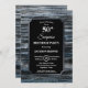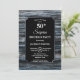 Um convite de 50 anos para a madeirinha azul, de prata rústica, com o texto branco destacado sobre fundo preto.