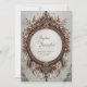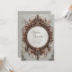 Set a warm and inviting tone for your celebration with this beautifully detailed circular design. The artwork features a stunning wreath composed of textured brown and tan feathers, layered with clusters of dusty rose and mauve blossoms. An intricate, dark antique-style frame surrounds the central text area, decorated with filigree details that add a touch of vintage elegance to the rustic composition. The earthy color palette creates a cozy, organic aesthetic that feels both sophisticated and grounded. This design is a perfect match for an autumn barn wedding or a countryside ceremony held during the fall foliage season. You might also select this earthy style for a neutral baby shower, a milestone birthday dinner, or a sophisticated thanksgiving gathering. This decorative nature border is also perfectly suitable for artisan craft business cards, holistic wellness retreat flyers, or organic skincare product labels.