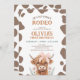 Convite Rustic Brown Highland Cow First Rodeo 1st Birthday