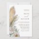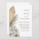 Enhance your wedding stationery with this elegant invitation featuring original watercolor pampas grass, off-white florals, and earthy palm foliage set against a white background with warm dark brown typography. The warm, moody tone beautifully enhances the soft botanical artwork, creating a modern yet rustic aesthetic perfect for boho, desert, autumn, or neutral-themed weddings. Fully customizable, this invitation offers a sophisticated and unique way to showcase your wedding details.