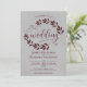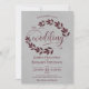 Este belo convite para o casamento apresenta um design rústico com ranhuras de burgundy, marrom ou folhas de cor d'água tingidas de vinho e inscrições modernas em um fundo de cinza marmoreado. Sofisticados, clássicos e quicos, estes convites adicionarão estilo e graça à sua celebração de casamento.