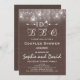 Cartão design único, rústico, com uma bela tipografia de CHURRASCO I DO, lanternas de mason jars e luzes de cordas, em um fundo de burlap. Use a ferramenta Personalizar para adicionar suas informações. Veja, também, minha coleção I DO CHURRASCO Chalkboard/Barn e Gingham.
