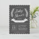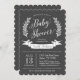 Chá de fraldas rústico chic com tipografia elegante em uma coroa botânica branca. O design tem um fundo de quadro de controle falso impresso. Clique em Personalizar para alterar as fontes e cores do texto para criar uma design única de um tipo.