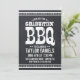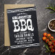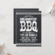 convite de festas legal de churrasco de graduação rústica com tipografia vintage angustiada sobre fundo chalkboard falso. Personalize-o com seus detalhes de festa de formatura. Espaço adicional do vazio no verso para fotos ou mais texto. Clique em Personalizar para editar fontes e cores para criar um convite de festas de CHURRASCO de graduação exclusivo.
