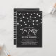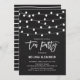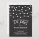 Convide familiares e amigos com este convite de festas de chá rústico e caprichoso. Apresenta luzes de fadas brancas suspensas sobre um fundo de quadro negro. Este convite à luz é perfeito para festas de chá ao ar livre.
