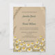 Traga um pouco de encanto rústico para o dia do seu casamento com este belo convite ao estilo kraft-paper. Apresentando delicadas flores camomilares desenhadas à mão em marfim e amarelo pálido, sotaques de erva-pampas macios, e um toque texturizado, cria um humor quente e natural. A área central inclui texto editável, fazer simples de personalizar com seus nomes, data do casamento e detalhes. Perfeito para casais que amam a terra, o eterno e designs inspirados na natureza.