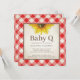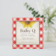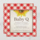 Este convite para bebê vermelho do país vem adormecido com um design de toalha de mesa talhada com flores amarelas em negrito. Seus detalhes de churrasco estão definidos em um tipo elogioso. O design de papel vintage é transportado para o fundo do seu convite. Perfeito para casais, gêmeos coed baby e gender revelam chás. Para ver mais convites à luz do sol visite VG Convidados em