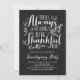 Há sempre algo para agradecer. Convide convidados para o seu evento com este convite personalizável de Amizade. Ele apresenta uma citação de Ação de Graças na caligrafia rustica em um fundo de quadro negro. Personalize adicionando seus detalhes. Itens correspondentes estão disponíveis.