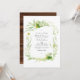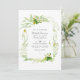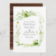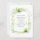 Convite de casamento verde que inclui samambaias, flores silvestres e morangos concebidos para serem rápida e facilmente personalizados. Ideal para qualquer tema ou casamento de jardim. O código QR no verso direciona para o seu local de casamento onde o pessoas pode aprender mais e rsvp.