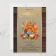 Lutante mas elegante, esta design de madeira escura apresenta um belo pássaro com uma abóbora botânica de outono e flores sazonais em um design de "Janto de Ação de Graças" que certamente agradará a seus potenciais convidados. Design composto por Designs Holiday Hearts.