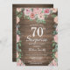 Rustic Floral Pink Surpreende 70 de Aniversário Convite para Mulheres. Flor Floral de Aquarela. Rosa Rosa Rosa Elegante e Flores de Pêonias. Aniversário Adulto. Fundo Rustic Wood. Retro de Vintagem do País. 13 15 16º 18º 20 21rua 30 40º 50º 60º 80 de 70 100º, qualquer idade. Para mais personalização, clique no botão "Personalizar" e use nossa ferramenta de design para modificar este modelo.