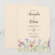Celebrate your love story with this elegant meadow wildflower wedding invitation, featuring delicate spring blooms arranged along the bottom in a soft countryside floral design. The warm beige background and romantic script typography create a refined yet natural aesthetic.
