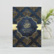 Convite Rustic Gold Navy Blue Damask Muslim Wedding