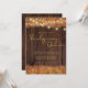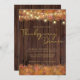 Elegante Rustic Graças Watercolor Autumn Leaves Janta Convite de festas com tipografia no estilo folha de ouro na moda com uma coloração aquática quente em tons de colheita e tons autunares de abóbora, merlot, castanho de avelã e folhas de ouro de mel em um fundo de madeira de celeiro rústico, erguidos com uma corda de luzes festiva. Adicione facilmente os seus detalhes e a data para um convite de na moda. Projetado pelo Zazzle Pro Designer BK Thompson exclusivamente para Cedar & String.