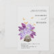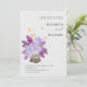 Um pote de flores, feito de latido de árvore e cheio de um buquê exuberante de hidrangeas, lilac, lavanda, trigo e hálito de bebê, faz uma bela ilustração, pintada à mão em aquarela digital, que decora este convite de casamento elegante e rústico que também apresenta algumas borboletas de ouro (este é um efeito digital, não uma folha de verdade). Romântico e charmoso, é uma escolha encantadora para um casamento de celeiro, um casamento ao ar livre, um casamento de jardim ou qualquer lugar rústico.