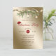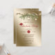 Um convite elegante para festas de férias com galhos de pinheiros de Natal com lanterna rústica e chapéu de Papai Noel em fundo de ouro. Estes belos convites de Natal são perfeitos para convites de festas de janto de Natal, convites para troca de presentes de Natal, angariadores de fundos de Natal, convites para bolas de férias e outros eventos realizados durante o mês de dezembro. Use apenas os campos modelo para adicionar suas próprias informações de evento.