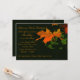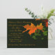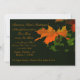 Um convite impressionante com uma folha de outono laranja queimada contra um fundo verde escuro. Perfeito para qualquer celebração do outono.O cartão é fácil de personalizar com seu texto, fonte, cor da fonte e escolha de seis tipos de papel.