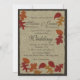 Folhas coloridas, vermelhas e laranja, sobre o aspecto impresso da burlap. Personalize para ser tão formal ou informal quanto desejar.