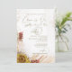 Um design artístico e exclusivamente boêmico chamado de para sua expressão pessoal. Um casal que faz as coisas diferente. Este tema baseado no girassol tem as cores do final do verão e do outono, com amarelo, laranja suave e burgundy. O texto marrom profundo do ouro está em uma caligrafia de aparência manuscrita emparelhada com uma fonte simples não serif para clareza e contraste. Elementos florais de Boho em um fundo texturizado rustico do reboco. A disposição do canto da aquarela e da motif de girassol pintado é acentuada com traria floral de ouro pálido. Cores modernas e girassóis ouros se combinam nesse tema natural. Um fundo ligeiramente texturizado para frente e para trás.