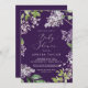 Este convite rústico de chá de fraldas roxo é perfeito para um primavera ou chá de fraldas de verão. A romântica e elegante design floral apresenta flores lilás roxas de aquarela com uma sensação de jardim boho country.
