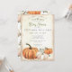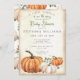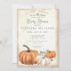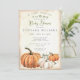 Junte-se a nós para celebrar a mais doce benção no caminho! Este convite temático apresenta vibrações confortáveis no outono, tons suaves e acentos adoráveis de abóbora — perfeito para receber um bebê em queda. Quer sejam fardos de feno e jarras de pedras ou abóboras de madeira e água-coloridas, este charmoso design dá o tom para um cheio de amor, riso e um pequeno talho de campo para celebração à terra.