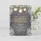Madeira de celeiro rústica e convite de casamento de rendas florais brancas com luzes encantadas de cordas e cheio de jarros de pedras de ouro estrelado. — Todos os elementos design criados por Jinaiji