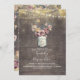 O convite de chá de fraldas rústico da Vintage apresenta jarro de mauve e dourado de mason floral, fio de luz e fundo de madeira de celeiro antigo.