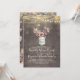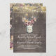 O convite à festa de noivado rustica da Vintage apresenta jarro de mauve e dourado de mason floral, fio de luz e fundo de madeira de celeiro antigo.