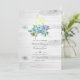 Convite para casamento floral de provando de vinho com hortelã e azul, com penas de pavão concebidas para serem rápida e facilmente personalizadas. Ideal para qualquer tema ou casamento de jardim. O código QR no verso direciona para o seu local de casamento onde o pessoas pode aprender mais e rsvp.