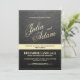 Convocação para Casamento de Couro Negra Moderno Russo. Este cartão apresenta uma tipografia elegante de cor caramelo no fundo preto granulado. É um cartão de convite de temas rústicos. Você pode personalizá-lo pressionando o botão (Personalizar). Se quiser personalizá-lo mais, vá para a opção (Clique para personalizar mais). Dimensão: 5" x 7" personalizável: Sim, Crie o seu. —A Perfeição—