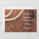Faça um tom informal, mas elegante, para o seu casamento ao estilo da fazenda com o encantador Casamento do País de Pérolas Russas Salve o Anúncio de Data. Este tema casual e clássico de rancho personalizado mantém o anúncio da data com uma fotografia escura de um colar branco de pérolas e madeira marrom-rustica de celeiro com unhas enferrujadas. Inpo perfeito ou ideia para uma cerimônia relaxada de festa de celeiro e evento de celebração de recepção. Disponível como um convite impresso para envio por correio ou como um download digital para fácil compartilhamento digital online.