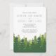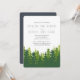 Uma escolha rústica para casamentos em regiões montanhosas, florestais ou invernais, nosso convite para o casamento da Pine Forest apresenta uma borda de árvores altas e verdes abençoadas em tons ricos de verde caçador. Adicione seus detalhes de casamento usando os campos fornecidos, em cinzas de carvão profundo.
