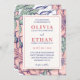 Convite Rustic Pink Floral Hand Drawn Botanical Wedding