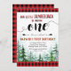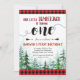 Convite de aniversário Rustic Red Xadrez Boy. Com floresta verde e estilo rústico, este convite de lenhador é perfeito para o primeiro convite de aniversário.
