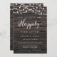 Convite Rustic String Lights Boho Wood Weditation
