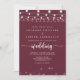 Esta corda rústica ilumina o convite de casamento burgundy é perfeito para um casamento clássico. A design apresenta belas luzes de cordas pintadas à mão com estrelas esplêndidas em fundo de burlu.