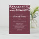 Este corda rústico acende o convite de janto de ensaio burgundy é perfeito para um evento simples. A design apresenta belas luzes de cordas pintadas manualmente em um fundo burlão.