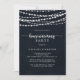 Esta corda rústica ilumina o convite de festas do lar é perfeito para um evento simples. O design apresenta belas luzes de cordas pintadas manualmente em um fundo azul escuro.