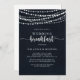 Esta corda rústica ilumina o convite do café da manhã é perfeito para uma celebração moderna. O design apresenta belas luzes de cordas pintadas manualmente em um fundo azul escuro.
