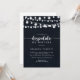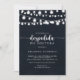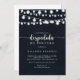 Esta corda rústica ilumina o chá de panela espanhol é perfeito para um simples chá de casamento. O design apresenta belas luzes de cordas pintadas manualmente em um fundo azul escuro.