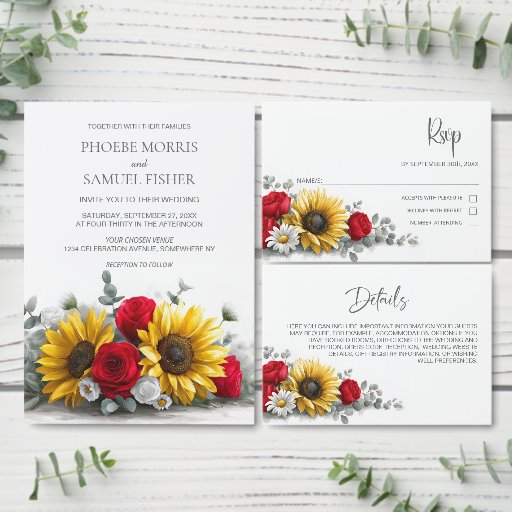 Rustic Sunflower Red Rose Floral Wedding SuiteCriado por Merry D