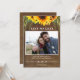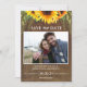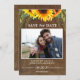 Este rústico cartão de datilografia apresenta uma bela imagem aquática de flores solares do outono em um fundo de madeira e um quadro fotográfico horizontal. Personalize com sua foto de noivado favorita para seu próximo casamento.