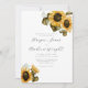 Convite de casamento moderno e rústico com ilustração aquosa de girassóis amarelos com o hálito do bebê. Perfeito para um casamento de verão.