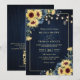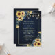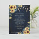 Convite Rustic Sunflower Navy Blue Wood QR Code Wedding